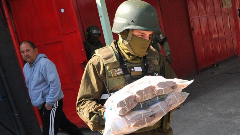 El millonario botín fue hallado por personal del OS-9 de Carabineros, en el marco de múltiples allanamientos realizados durante las últimas horas en las regiones Metropolitana (Cerro Navia), O’Higgins y Valparaíso.